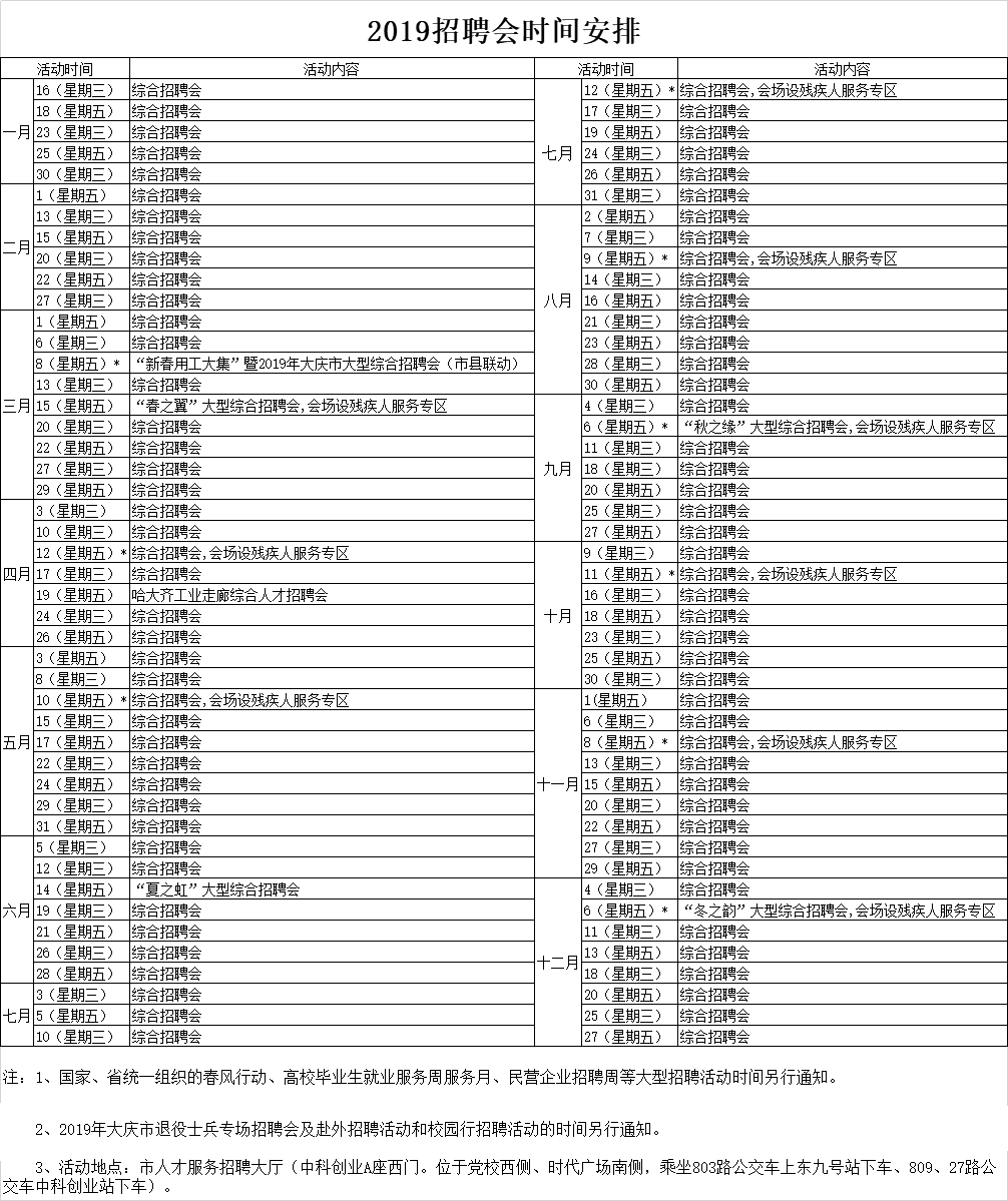 哈大齊工業(yè)走廊人才服務(wù)中心2019年招聘會(huì)時(shí)間安排