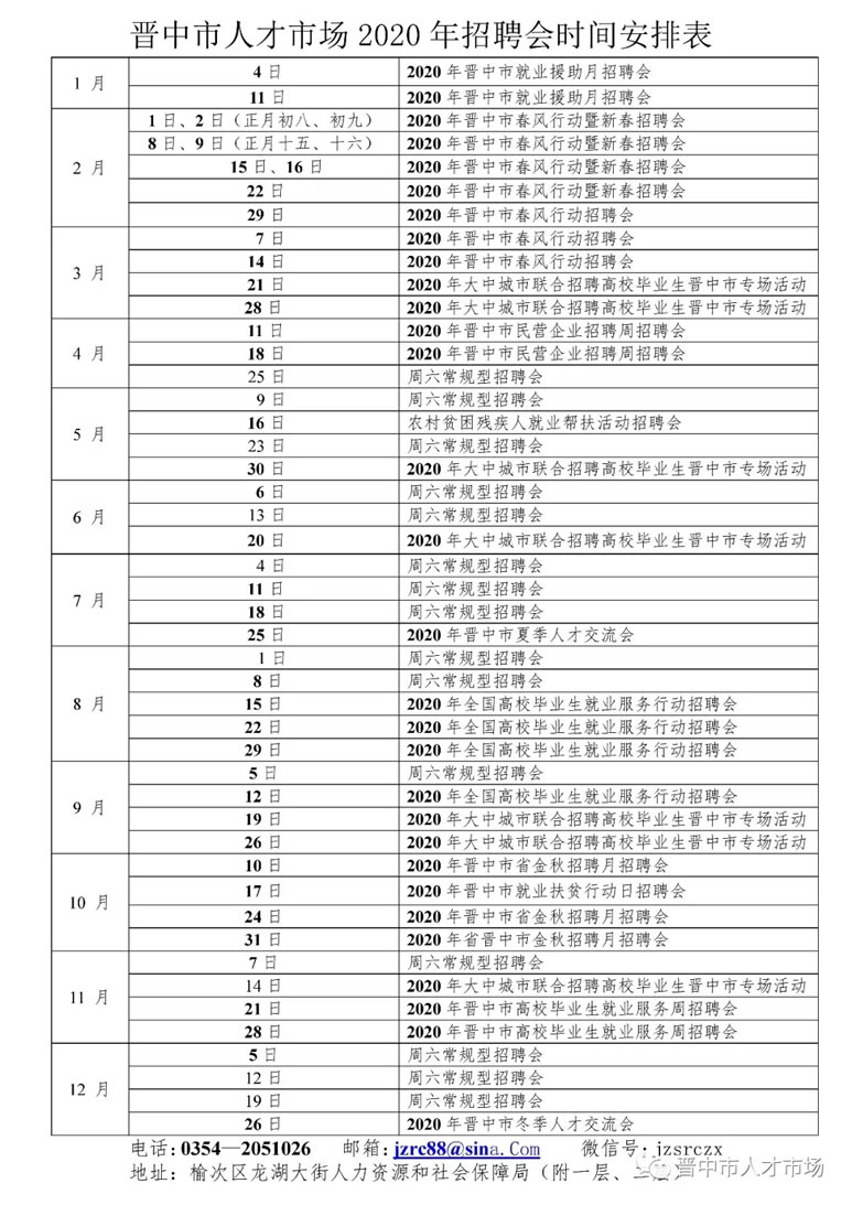 晉中市人才市場(chǎng)2020年招聘會(huì)時(shí)間安排